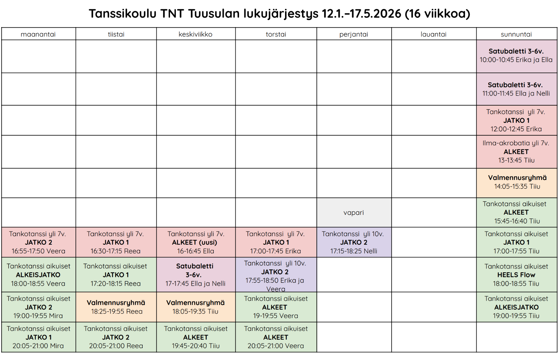 Kevätkausi alkaa 12.1.2026